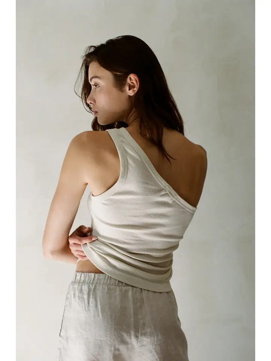 Knit 100% Organic Cotton Ribbed One Shoulder Top