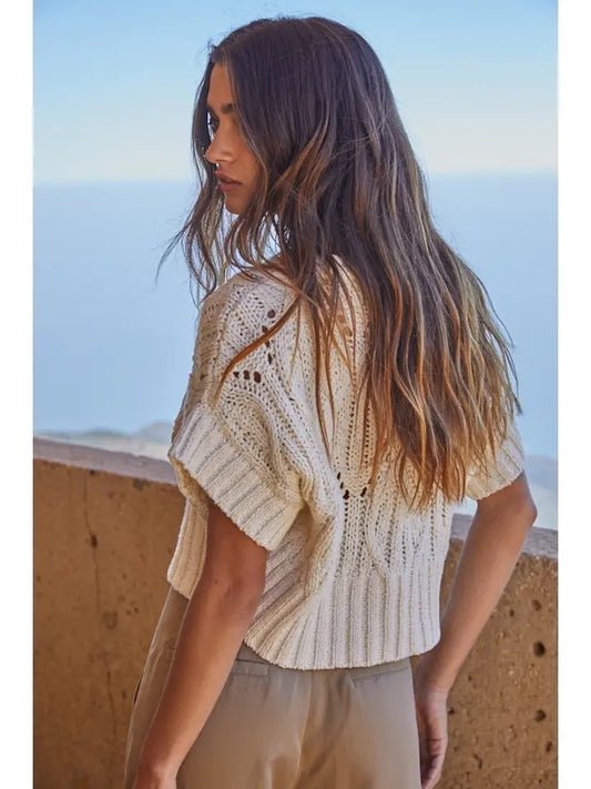 Knit Sweater Crochet Round Neck Short Sleeve Top