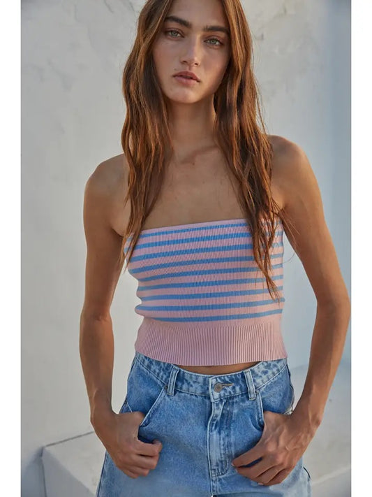 Knit Sweater Ribbed Striped Strapless Tube Top