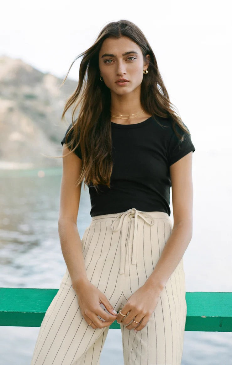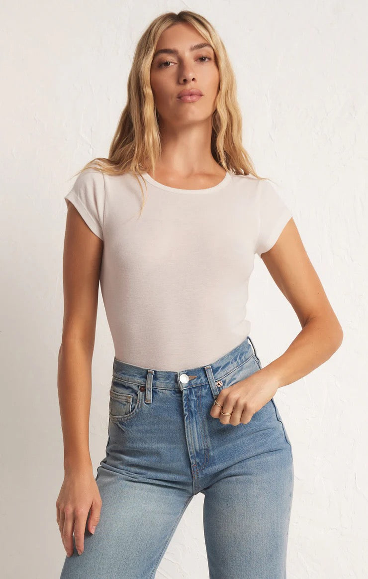 The 90's are back, and we're here for it! All the nostalgic details with modern comfort, it's the 90's Baby Tee. Made using our softly textured rib fabric, this tee features a slim fit that's meant to be worn tucked. Pair it with low waisted denim to complete the throwback look.