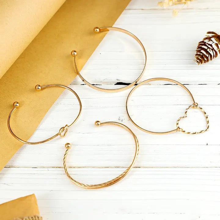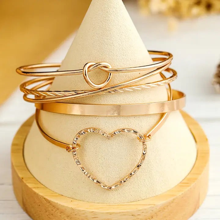 Gold Heart Knot Plated Multi Layer Open Cuff Bracelet Set