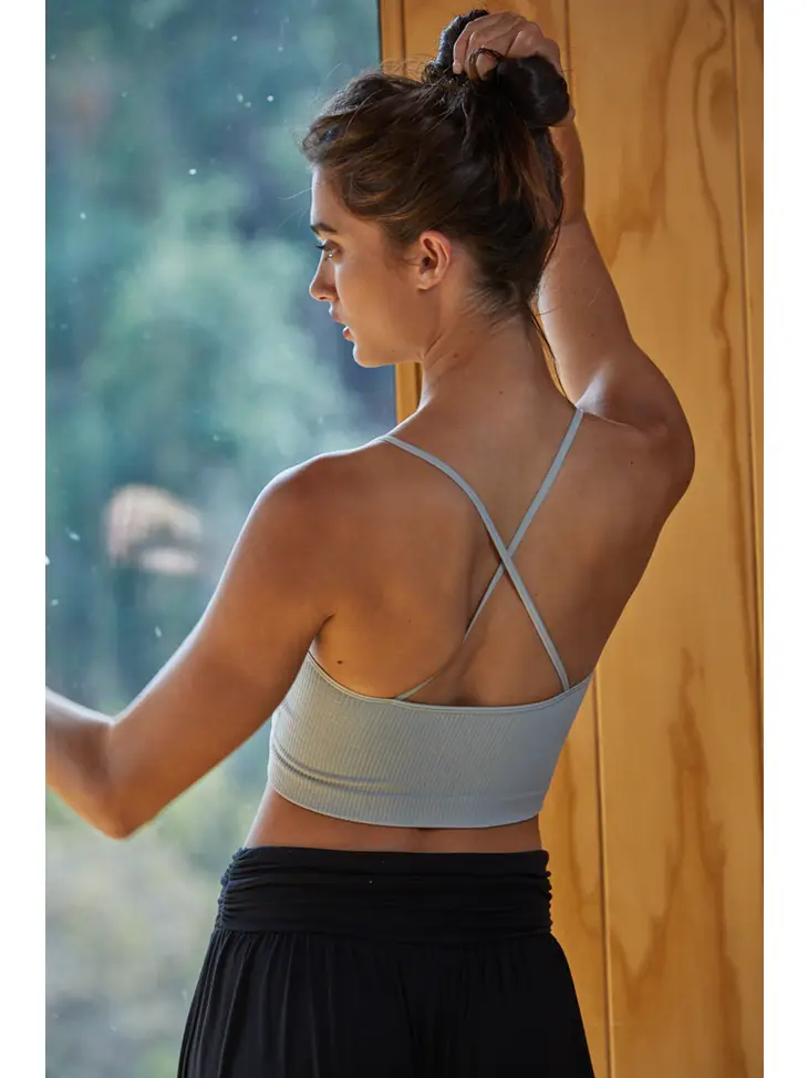 Seamless Ribbed Triangle Chest Deep V-Neck Spaghetti X-Back Brami