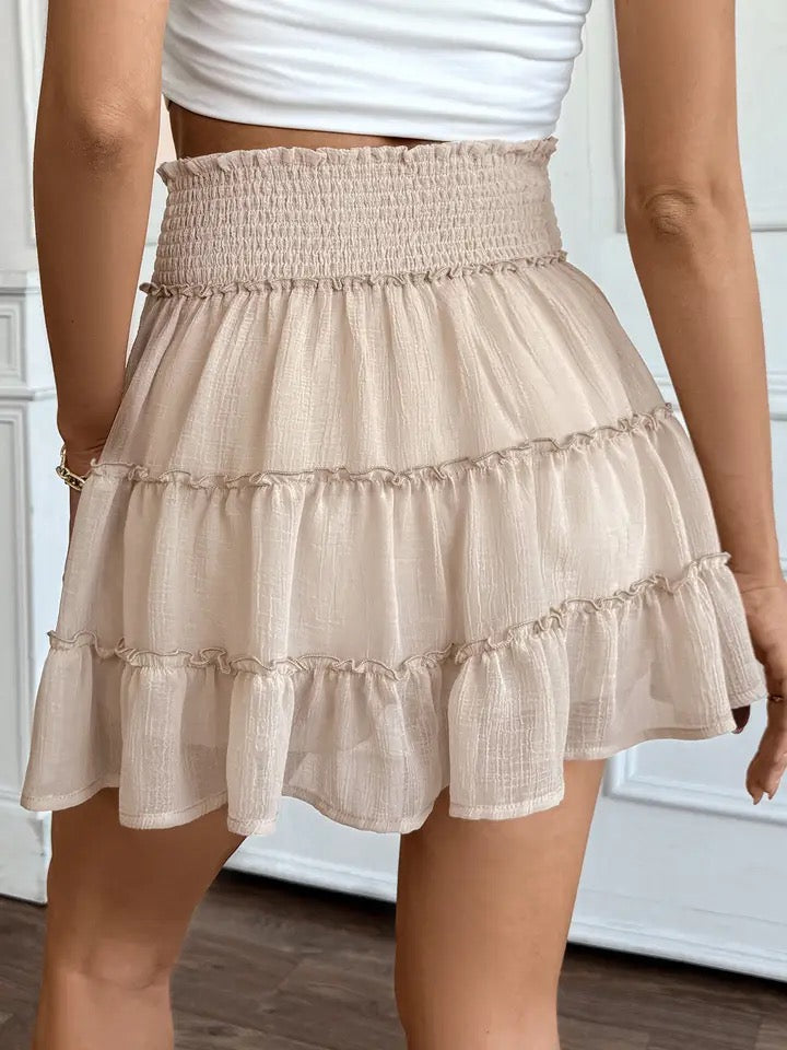 High Waist Frill Tiered Mini Skirt with Built in Short