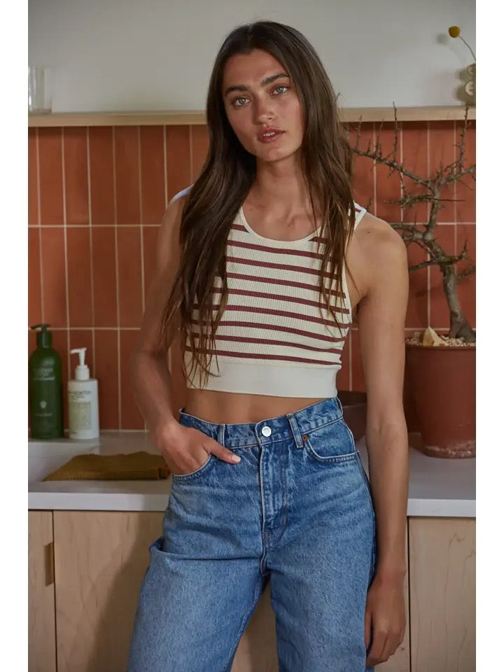 Knit Seamless Ribbed Striped Scoop Neck Racerback Brami