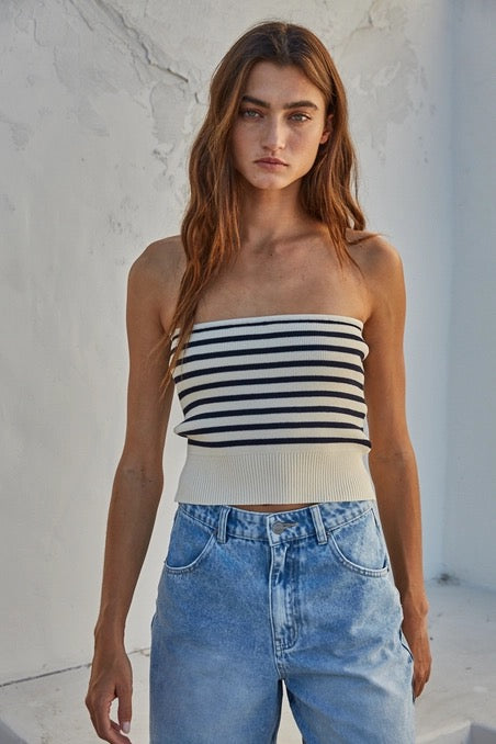 STACIE TUBE TOP- Knit Sweater Ribbed Striped Strapless Tube Top