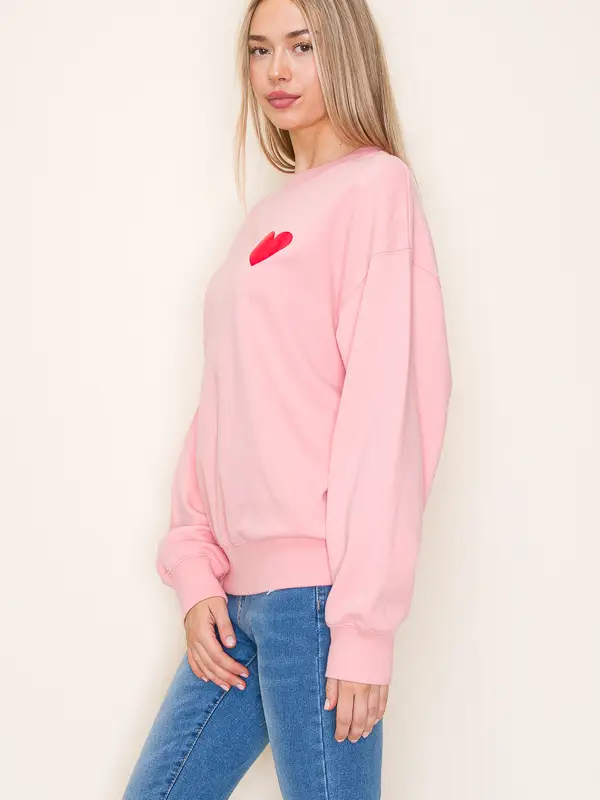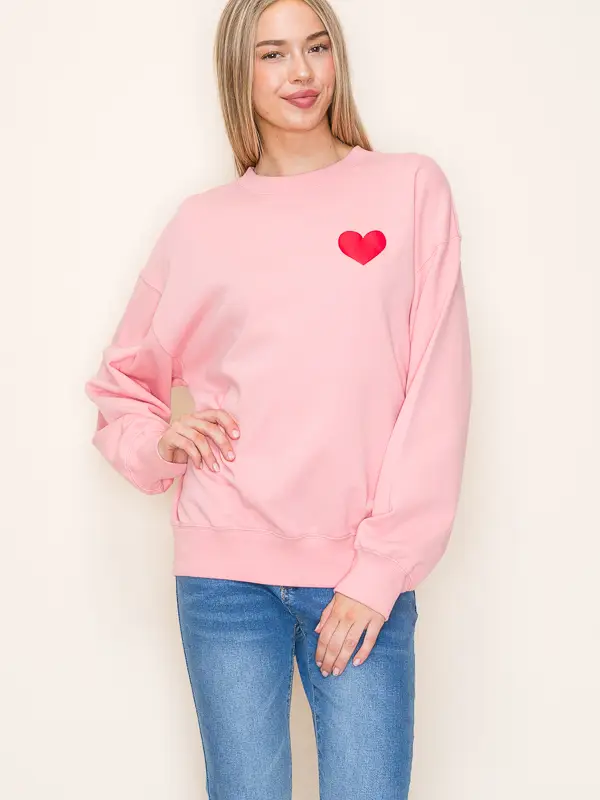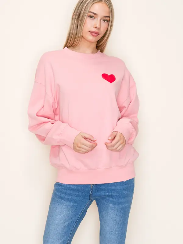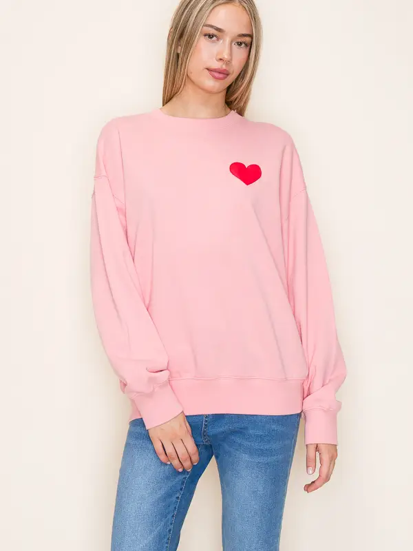 TINY PUFFY HEART IN CORNER PREMIUM WASH VALENTINE'S DAY GRAPHIC SWEATSHIRT