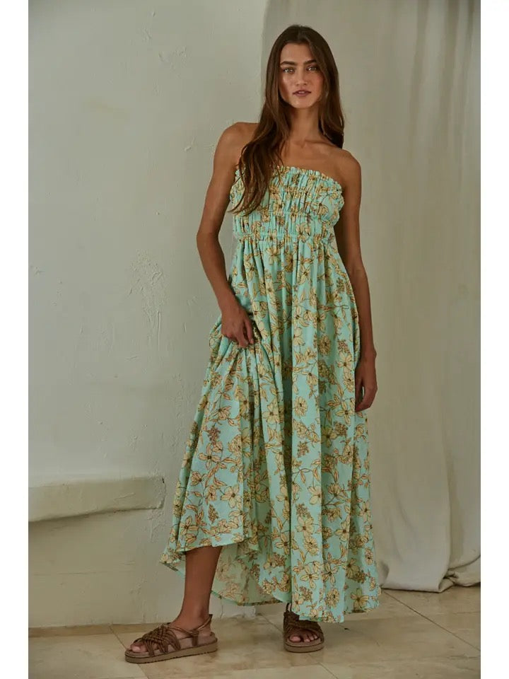 Woven Cotton Rayon Floral Print Smocked Tube Dress