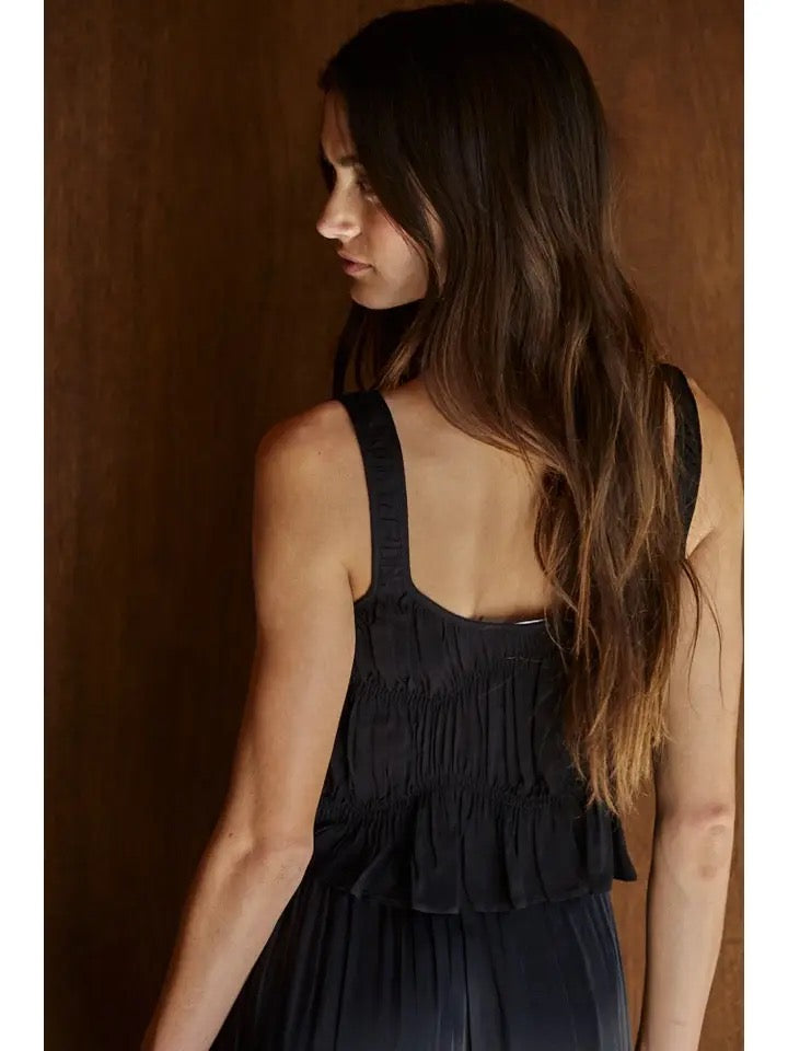 Woven Rayon Plunged V-Neck Sleeveless Smocked Top